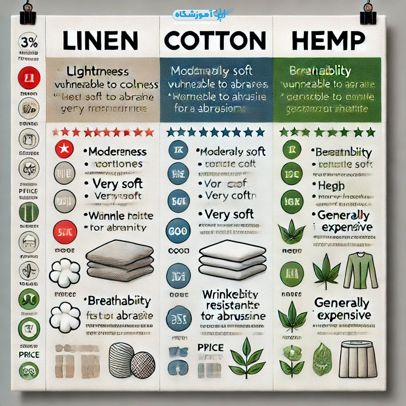 در اینجا یک مقایسه مثبت و منفی از لینن، کتان و کنف آورده شده است: